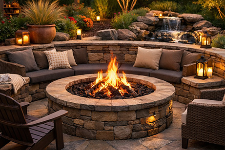 Add warmth, ambiance, and functionality with a custom fire pit or seating area. Perfect for evening gatherings and year-round enjoyment.